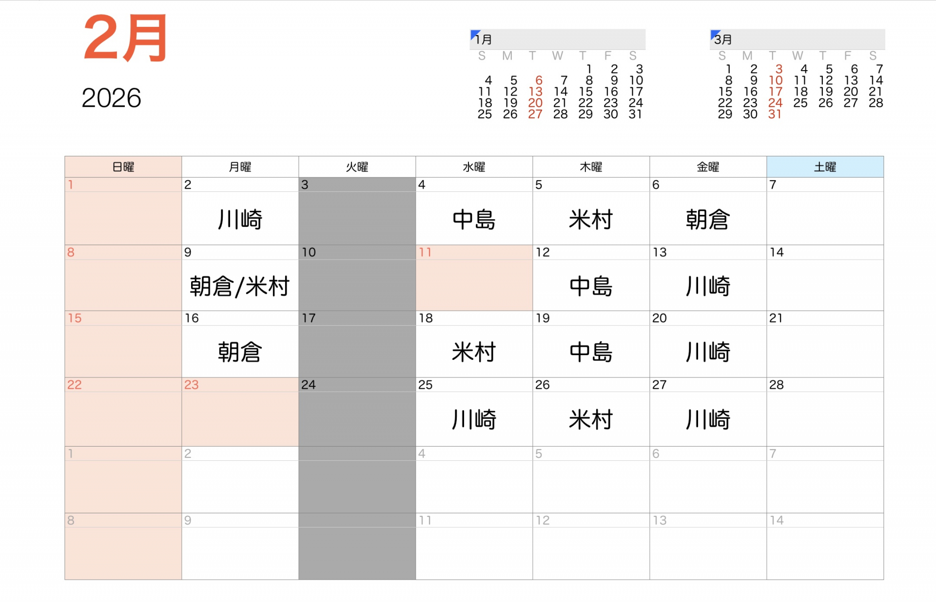 | 日 | 月 | 火 | 水 | 木 | 金 | 土 |